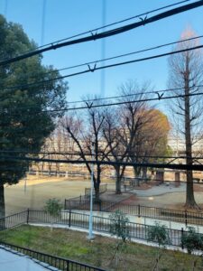 冬の朝、当事業所から見える景色は、日陰になっていることもあり少しものさみしい感じですが